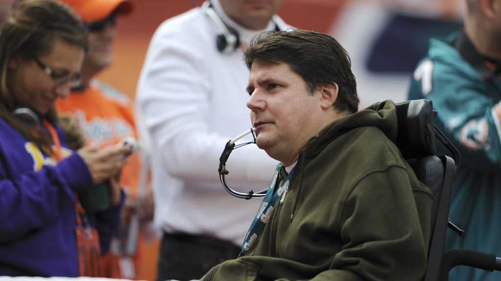 Marc Buoniconti discusses the tackle which caused him to be paralysed and the effect it had on Herman Jacobs, the player who collided with Buoniconti. The then 19-year-old son of future NFL hall of famer Nick Buoniconti was all set to carve out his own American football career when he suffered a spinal chord injury whilst playing at college; in that moment his life changed forever. Speaking with Sporthour's Shari Vahl, Buoniconti discusses his life long friendship with Herman Jacobs, who he attempted to tackle and explains that Jacobs has suffered more than him. Photo: Miami Dolphins fan Marc Buoniconti on sidelines during game vs Pittsburgh Steelers. Buoniconti became a quadriplegic after sustaining paralyzing spinal cord injury during 1985 game. (Credit: Sports Illustrated via Getty Images)
