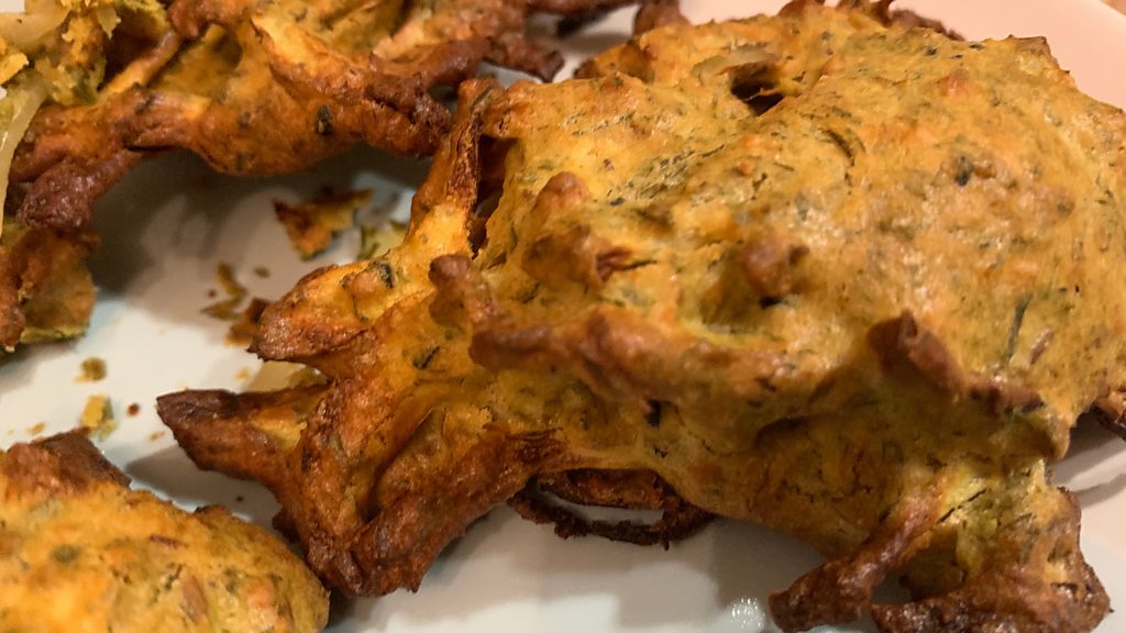Air Fryer Onion Bhaji Ingredients (makes 4 Bhajis):- 100g (⅔ Cup) Onion 45g (½ Cup) Gram Flour 15g (1½ Tbsp) Rice Flour ½ Tsp Turmeric ½ Tsp Cumin Seeds ½ Tsp Mustard Seeds ½ Tsp Onion Seeds ¼ Tsp Salt ¼ Tsp Brown Sugar 1 Clove Garlic 1 Tbsp Grated Ginger 1 Tbsp butter 3 Tbsps dried Chives 80ml (⅓ Cup + 1 Tbsp) Water Oil Spray Instructions:- 1. Melt the butter over a low heat. 2. Mix the dry ingredients. 3. Mash the garlic clove, grate the ginger and add them to the dry ingredients. 4. Pour in the melted butter and the water. 5. Top and tail a small-medium onion and remove the skin, cut it in half and finely slice from the top to bottom and add it to the bowl, then stir to combine. 6. Spray the air fryer basket with oil. 7. Wet your hands and form into 4 fairly loosely formed balls. 8. Place the balls in the air fryer, spray them with oil spray and then cook for 12 minutes at 180°C or 350°F. 9. After 12 minutes increase the temperature to 200°C or 400°F respray with oil and cook for a further 4 minutes.