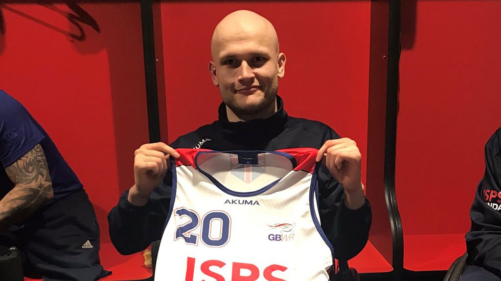 Jack Smith swapped one rugby code for another after he was paralysed whilst playing rugby union and, after taking up wheelchair rugby, he is now a Paralympic champion. Smith – who has had cancer twice – was diagnosed with Hodgkin’s Lymphoma at the age of 16. Two weeks later he broke his neck playing rugby and was paralysed. Determined to still be involved in sport, he took-up wheelchair rugby and he tells Sportshour’s Caroline Barker how he fell in love with the excitement of the sport which is played indoor by mixed teams. In 2020 – the year the Tokyo Paralympics were scheduled to be held before they were postponed – Smith’s cancer returned and he started chemotherapy. He then made history twelve months later when he was part of the first ever Great Britain wheelchair rugby to win a gold medal at the Paralympic Games. Image: Jack Smith holding up his Great Britain wheelchair rugby vest. (Photo courtesy of Jack Smith)