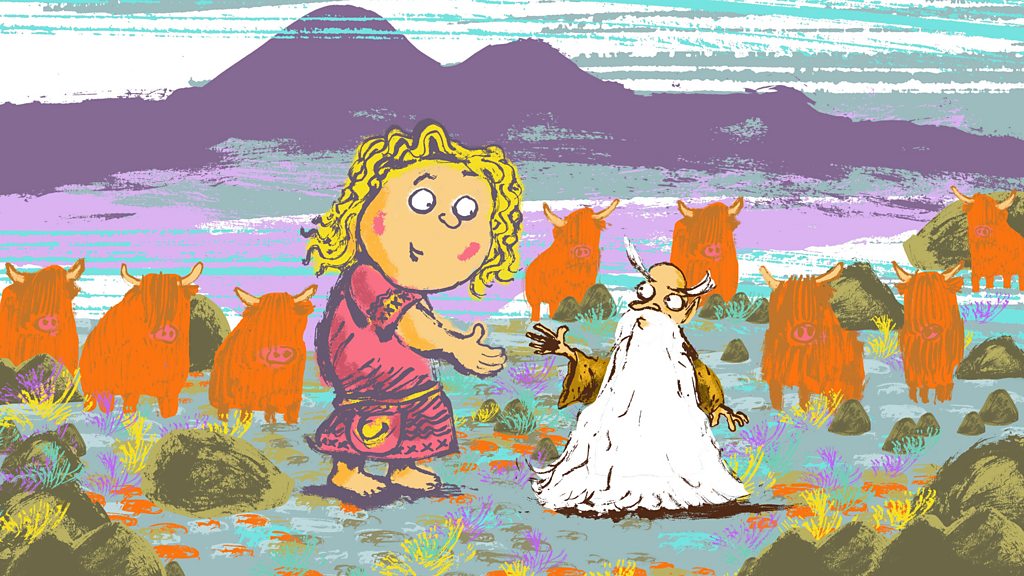 Flora finds counting hard, but one day she encounters a strange wee man who asks her to count his coos!