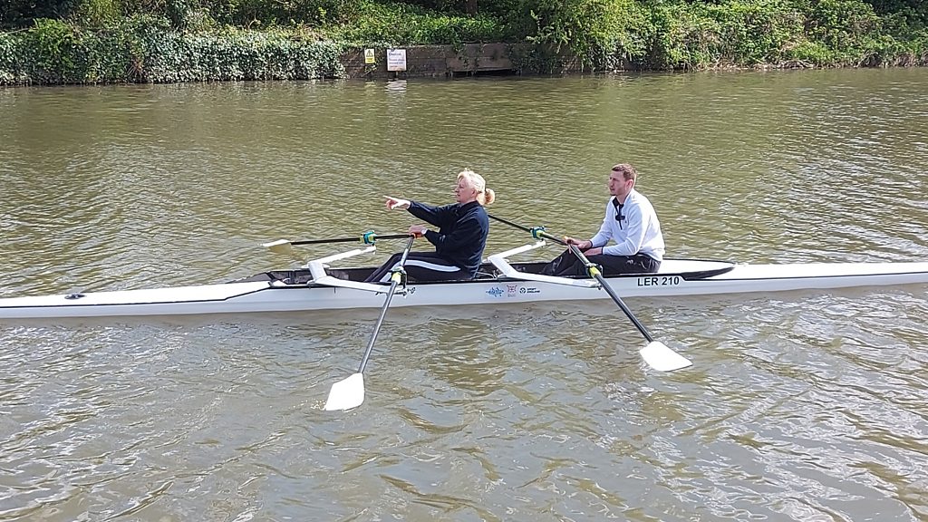 Chance joins Liz Purford from Leicester Rowing Club on the river to give rowing a go.