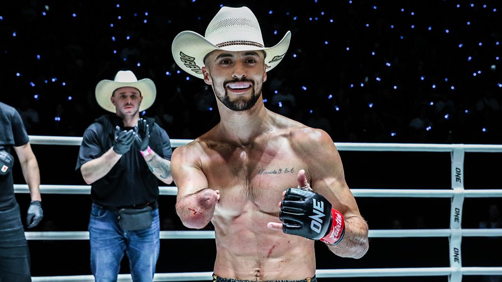 English-born Muay Thai fighter Jake Peacock wants to entertain and inspire the world through his achievements in the Muay Thai ring. Jake was born with one arm shorter than the other and he won on his ONE Championship debut in Bangkok in April 2024 – his biggest bout to date. But he tells Sportshour’s Caroline Barker that his greatest satisfaction comes from inspiring people who have been told they cannot do something – something that he continues to do in the ring and through his own gym in Calgary, Canada. He comes from a sporty family, his dad Gavin Peacock played in the Premier League for Chelsea and his grandfather was also a professional footballer. (Photo: Jake Peacock after winning on his ONE Championship debut against Kohei Shinjo in Bangkok in April 2024. Credit: ONE Championship)
