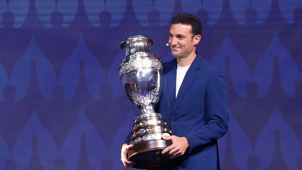 The oldest of the continental tournaments - the Copa America - begins its 48th edition on 20th June. It's being hosted in the United States and the World Cup holders Argentina are defending the title they won in Brazil three years ago. Sportsworld's Mani Djazmi and guests have your essential guide to the Copa America of 2024. Photo: Lionel Scaloni, Head Coach of Argentina, presents the Copa America trophy during the official draw of CONMEBOL Copa America 2024 at James L. Knight Center on December 07, 2023 in Miami, Florida. (Credit: Getty Images)