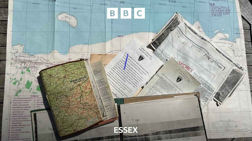 How did top secret documents about the D-Day invasions of 1944 be discovered in the boot of a Ford Escort in Essex, 80 years after the Allied invasion of Nazi-occupied France? Jeremy Goldsmith is from the House on the Hill Toy Museum in Stansted Mountfichet, where the plans are now on permanent display, has the answer. (Picture credit: Jeremy Goldsmith/House on the Hill Toy Museum)