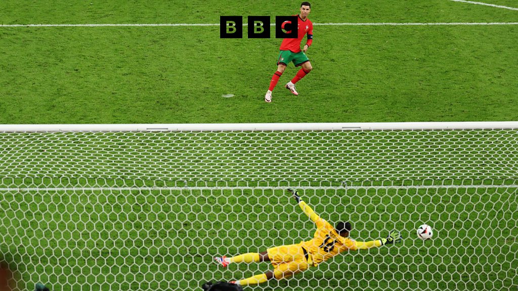 They end in jubilation or heartbreak depending on which team you support, but is there a secret to success in a penalty shootout? Sportshour’s Caroline Barker speaks to the guru of the shootout, Professor Geir Jordet, author of the new book “Pressure: Lessons from the psychology of the penalty shootout” on what it takes to step up and be successful. Jordet has been a consultant for more than 60 teams, and a personal performance adviser to over 130 top-flight players, so who better than to find out the key to success for spot kicks. Image: A general view as Cristiano Ronaldo of Portugal scores the team's first penalty in the penalty shoot out as Mike Maignan of France fails to a make a save during the UEFA EURO 2024 quarter-final match between Portugal and France at Volksparkstadion on July 05, 2024 in Hamburg, Germany. (Photo by Joosep Martinson - UEFA/UEFA via Getty Images)