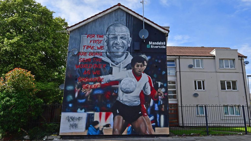 Howard Gayle talks to reporter Tom Walker about new mural honouring him