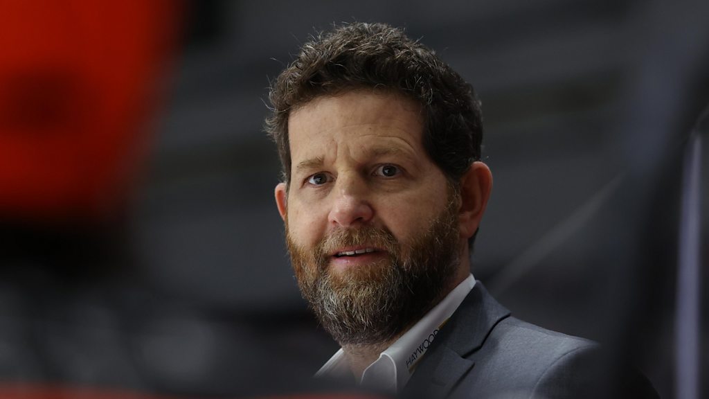 Sheffield Steelers head coach Aaron Fox speaking to Peter Spencer, ahead of their final weekend of the 2024-25 regular season. The Belfast Giants, Sheffield Steelers and Nottingham Panthers are all separated by four points going into the final two games.