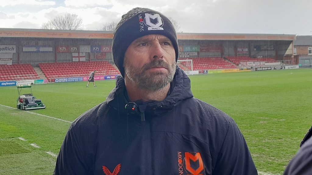 MK Dons boss Paul Warne reacts after winning his first match in charge 1-0 away at Crewe.