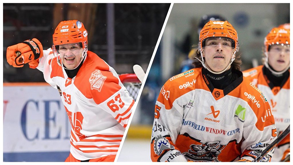Sheffield Steelers head coach Aaron Fox speaking to Peter Spencer after re-signing Finnish duo Mikko Juusola and Joona Huttula.