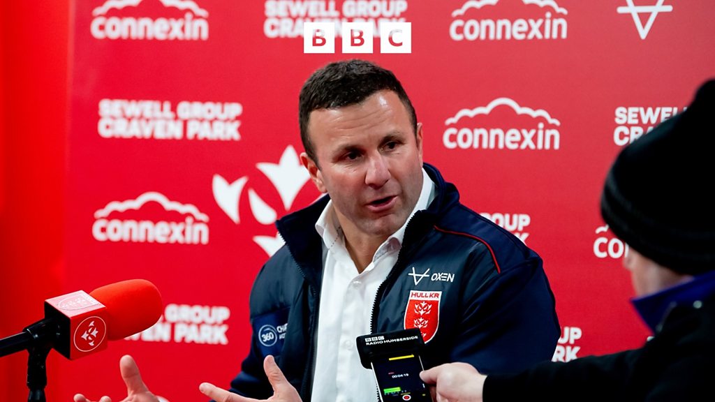 The head coach talks to Leo Joslin before the game against Warrington Wolves. Pic: Allan McKenzie/SWpix.com