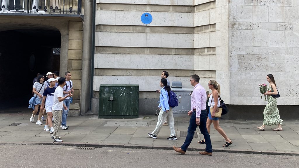 The bins below the plaque in Cambridge have been described as scruffy by tourists.