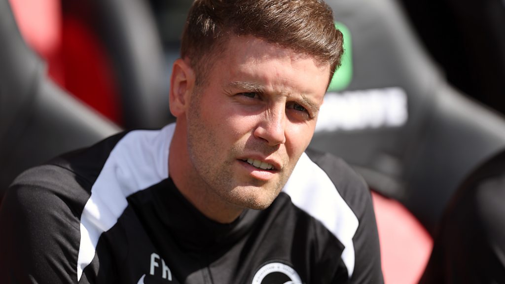 Albion head coach Fabian Hurzeler talks to Adrian Harms after the friendly at Southampton