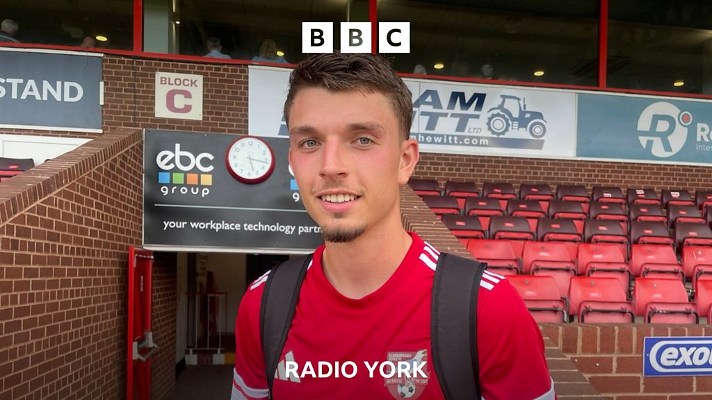 Scarborough Athletic defender Jake Hull speaking to James Fletcher, after their 1-0 defeat away at Kidderminster Harriers.