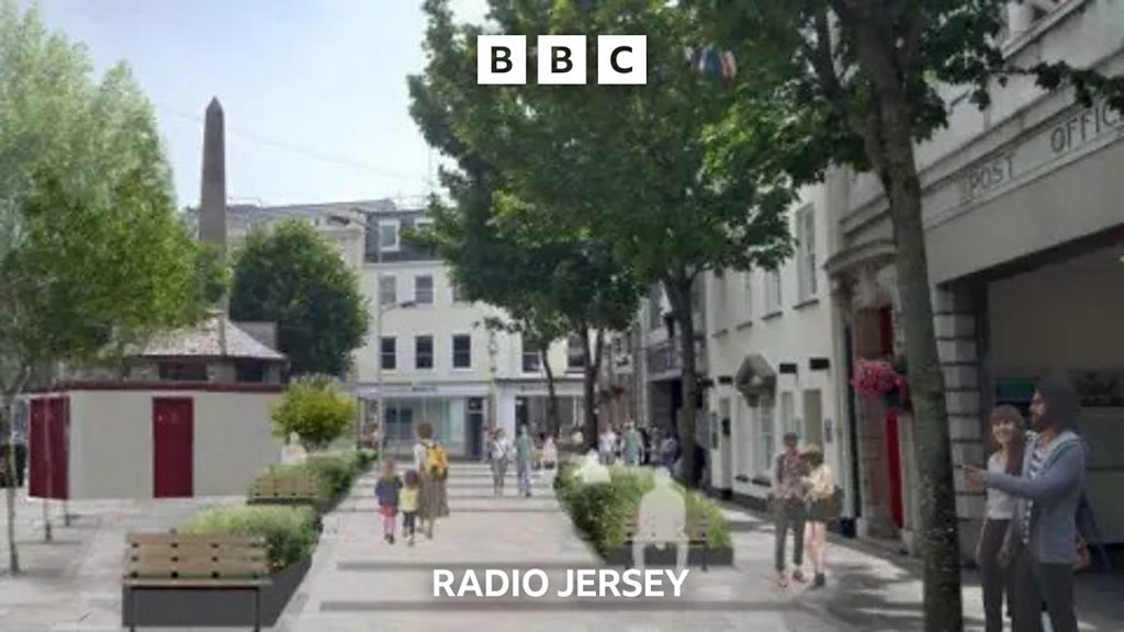Constable Andy Jehan, talks to Jenny about the revamping of Broad Street. Image credit: Government of Jersey