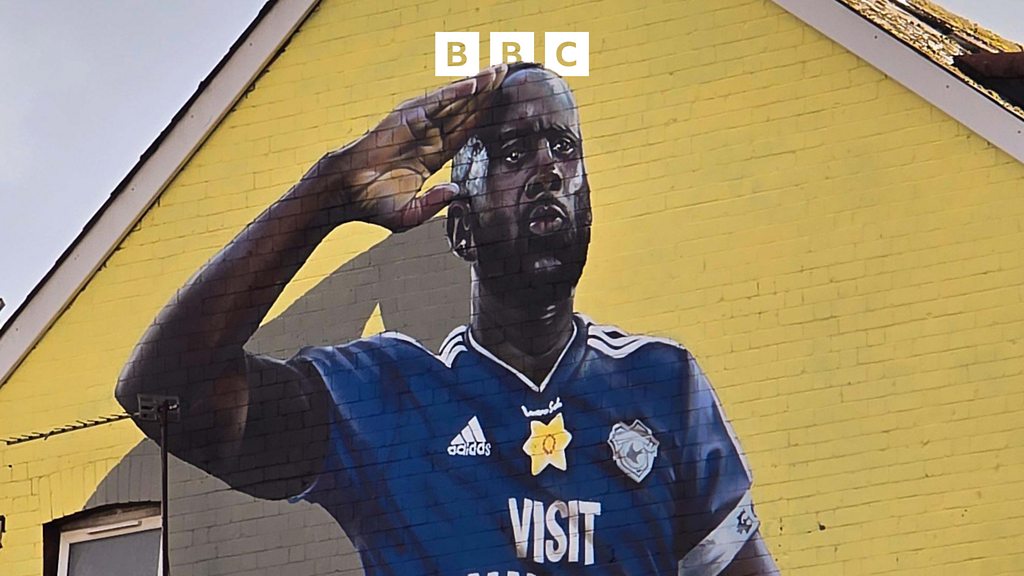 Ian Hunt attends the launch of the mural of former Cardiff City captain Sol Bamba and speaks to Sol's wife Chloe, Ibby Abdi who was behind the project and Cardiff City club director Steve Borley.