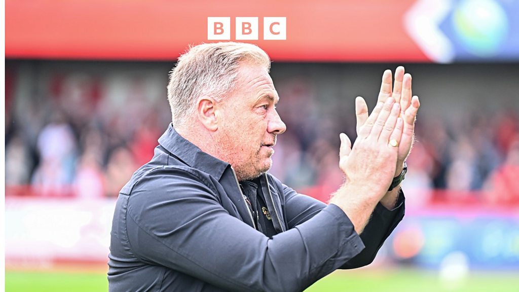 Scott Lindsey speaks to Gary Smith after Crawley's defeat to Barrow.