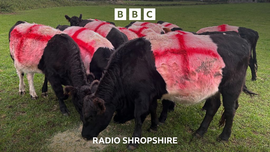 Cows have been painted with St George's flags in a field near Bridgnorth. Ed Bunning, who farms near Morville said he wanted to back British farming and tell people: "Come on England, let's all stick together and we'll pull through everything." BBC Radio Shropshire’s Alex James herd all about it.