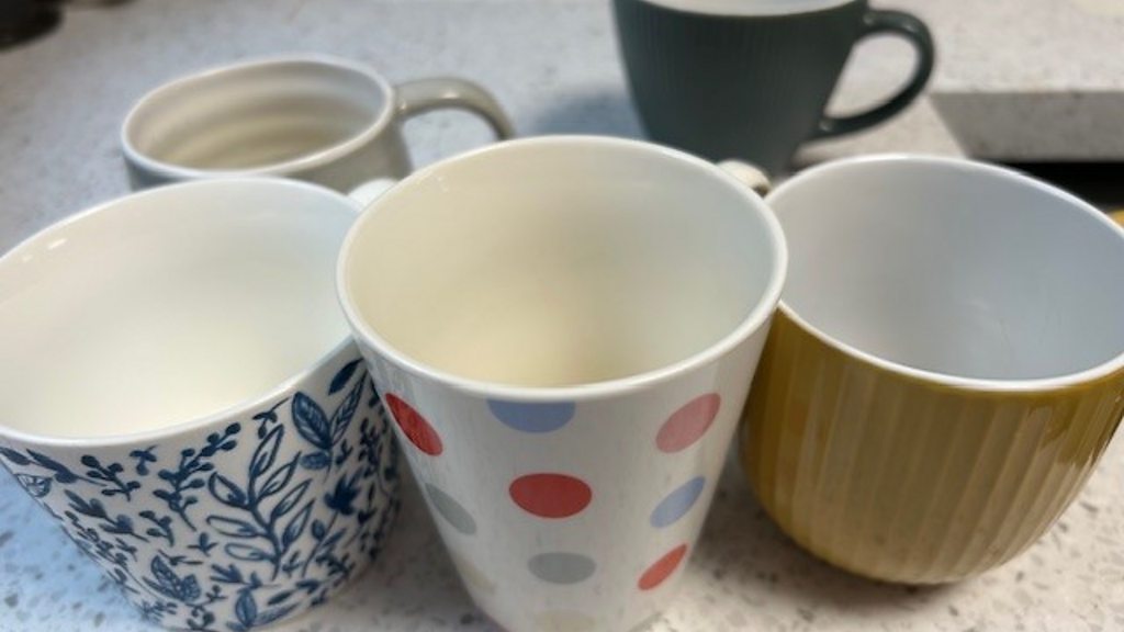 Trystan ac Elin yn trafod y baned ddelfrydol - mwg neu gwpan?