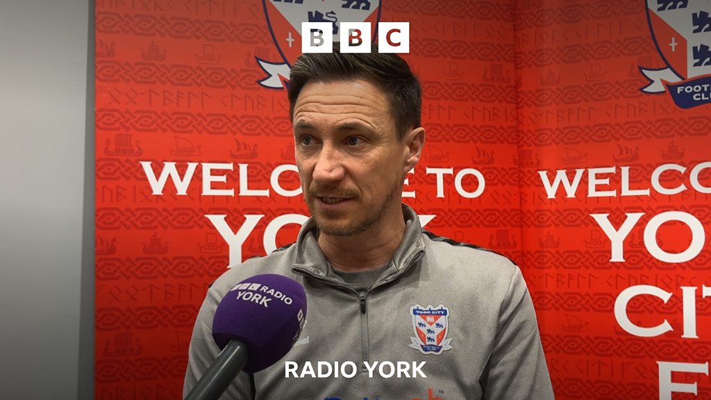 York City manager Stuart Maynard speaking to David Ward, ahead of their National League match against Wealdstone.