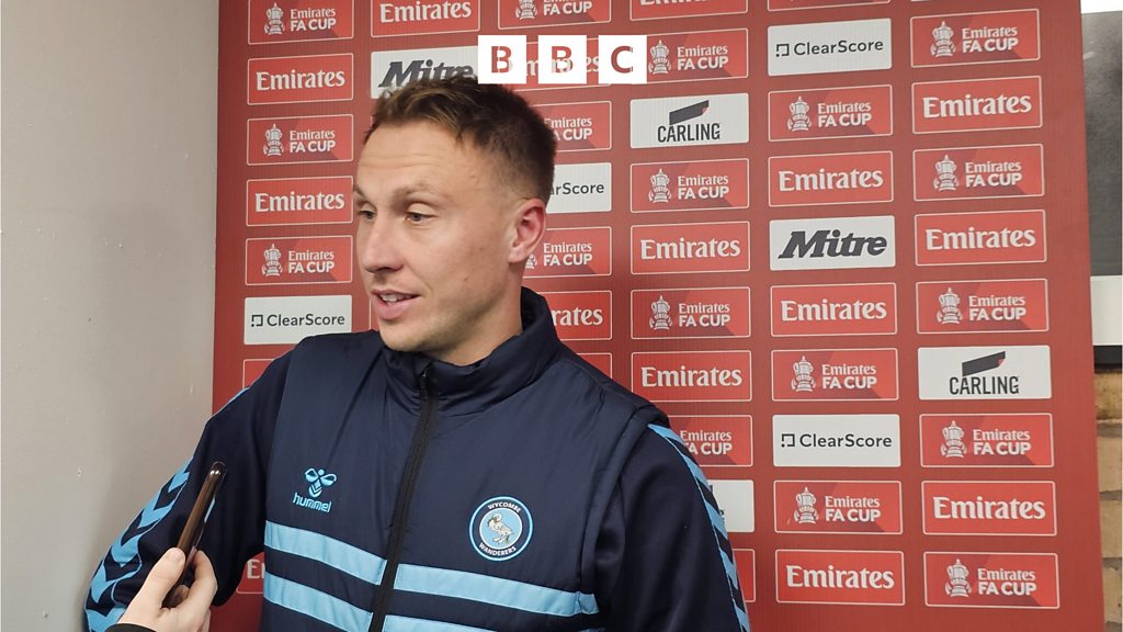 Cauley Woodrow reacts after scoring both of Wycombe's goals as they beat Plymouth 2-0. Image: BBC