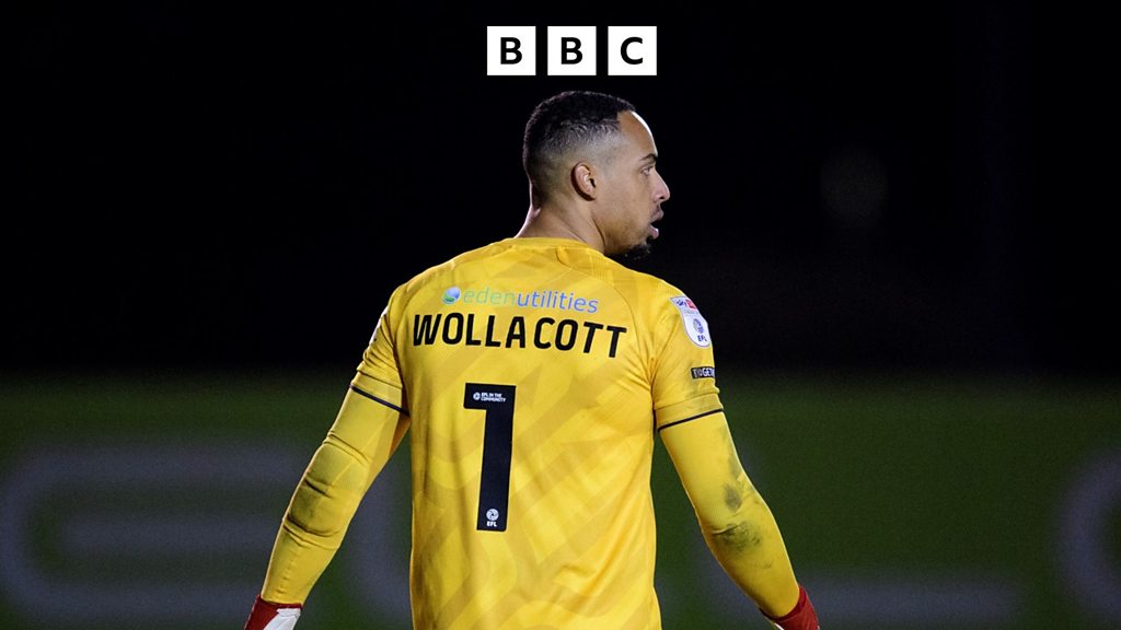 Crawley keeper Joe Wollacott speaks to Gary Smith after a 3-0 defeat at Boreham Wood.