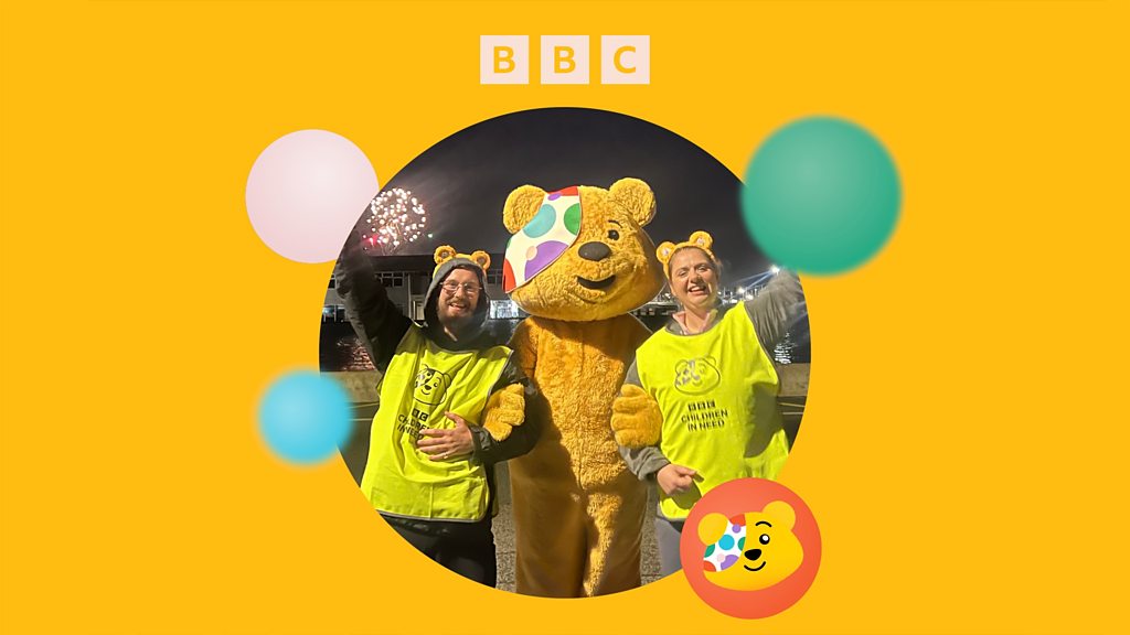 Guernsey presenters Tim Hunter and Steph Watkins took on Pudsey's three-legged challenge.