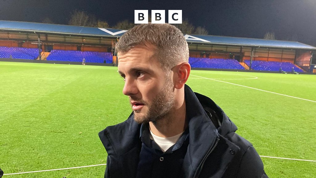 Luton Town manager Jack Wilshere reacts after beating top of the league Stockport 3-0.