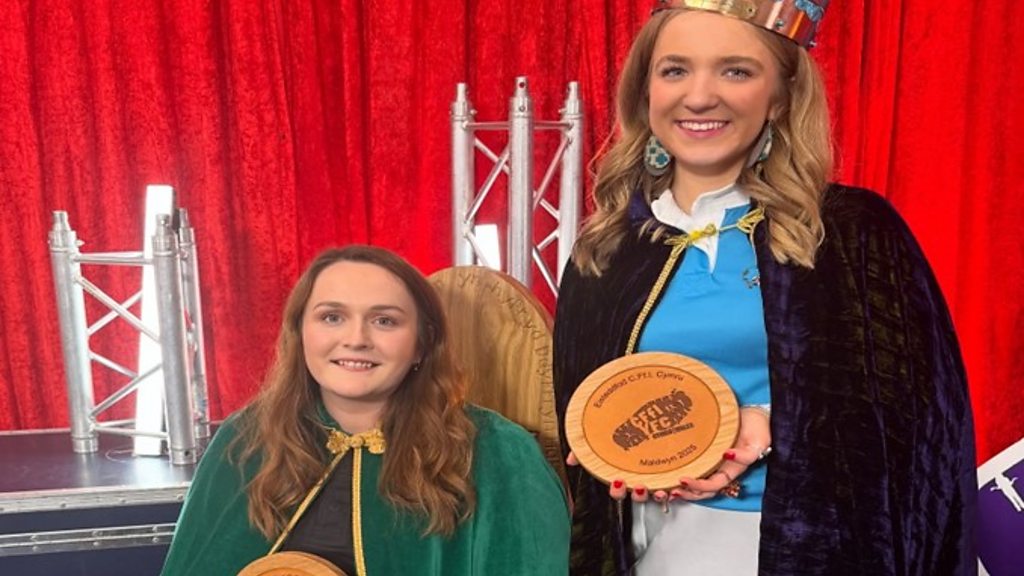 Fflur James a Mared Jones sydd yn trafod eu llwyddiant yn y Drenewydd gyda Ifan Evans