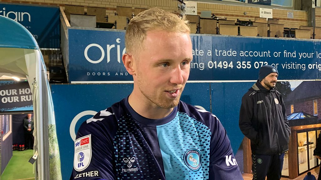 Wycombe's Jack Grimmer reacts after scoring late to get the win against Lincoln City. Image: BBC