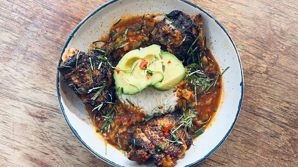 Kat's with Nick The Latin Chef learning to cook Venezuelan chicken stew