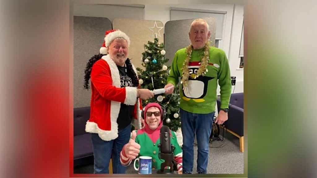 Dilwyn Morgan sy'n ymuno â pharti Nadolig John ac Alun
