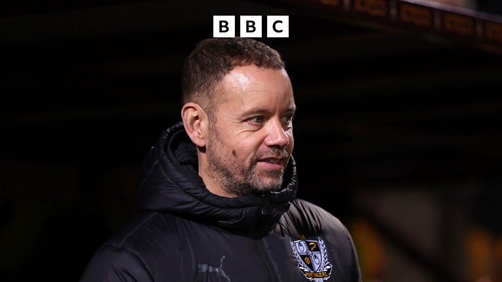 Port Vale interim manager Jamie Smith speaks to Phil Bowers after beating Blackpool.