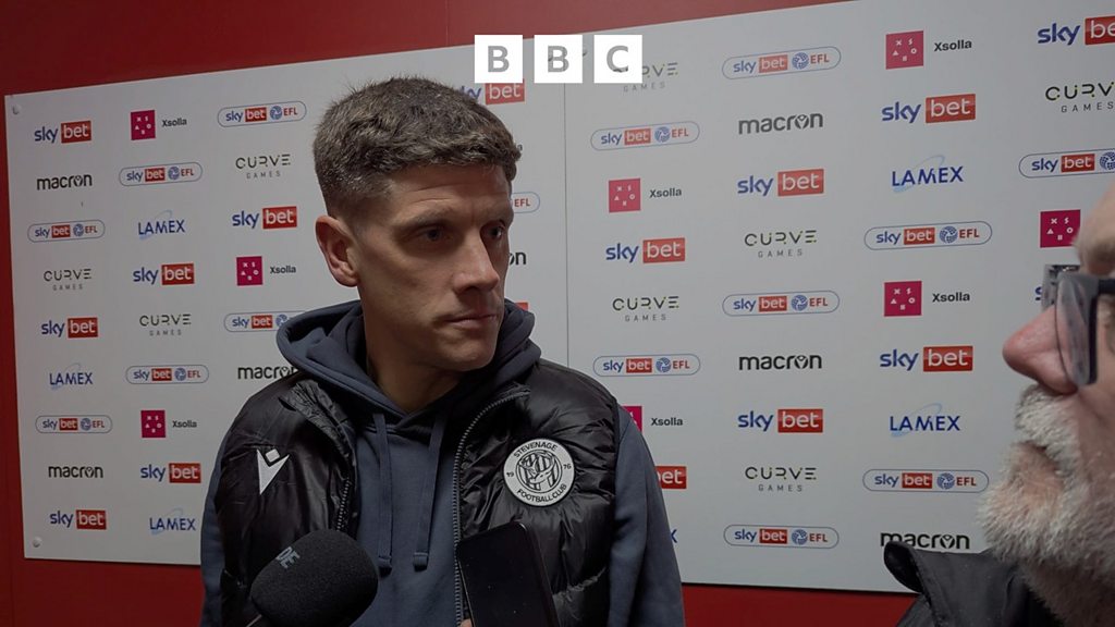 Stevenage boss Alex Revell reacts after his side's 1-1 draw to Mansfield at home.