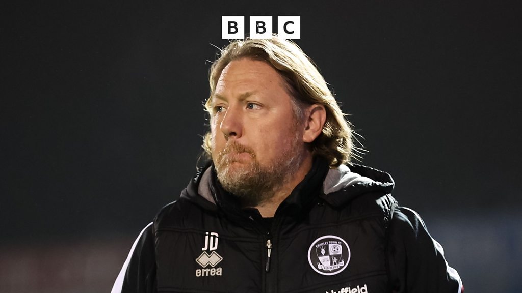 Crawley Town assistant head coach Jamie Day reacts to the defeat at Tranmere Rovers