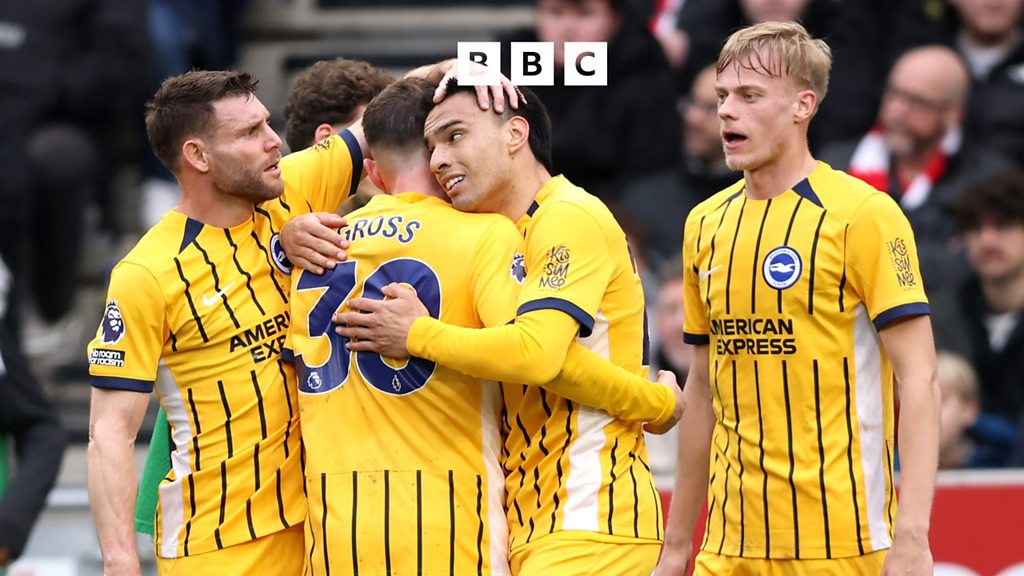 Brighton's Pascal Gross reacts to a 2-0 win at Brentford.