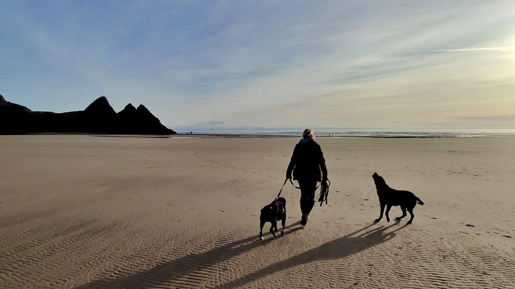 Mae Manon Eames wrth ei bodd yn mynd am dro i draeth Bae y Tri Chlogwyn ger Abertawe fel y soniodd wrth Heledd Cynwal.