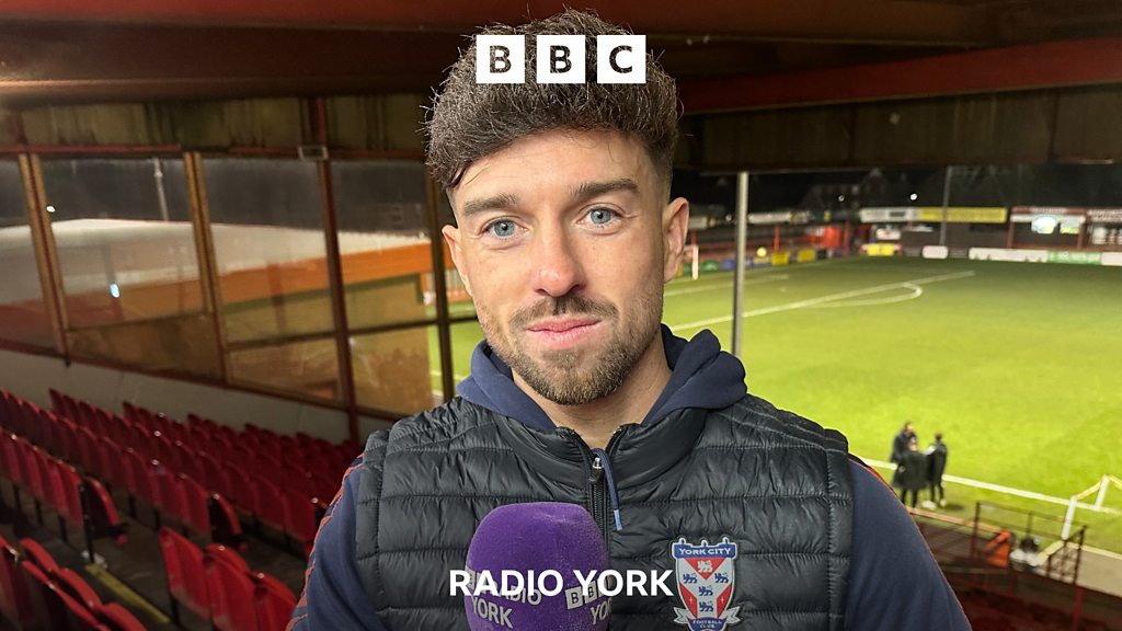 York City goalscorer Alex Newby speaks to David Ward after their 3-0 victory over Aldershot Town.