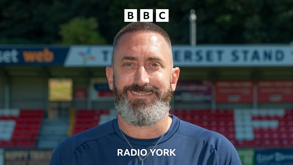 Scarborough Athletic manager Jonathan Greening speaking to Peter Spencer, ahead of their trip to Leamington.