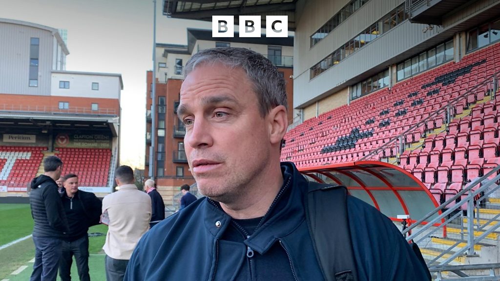 Michael Duff reacts after 10-men Wycombe lose 2-0 against Leyton Orient. Image: BBC