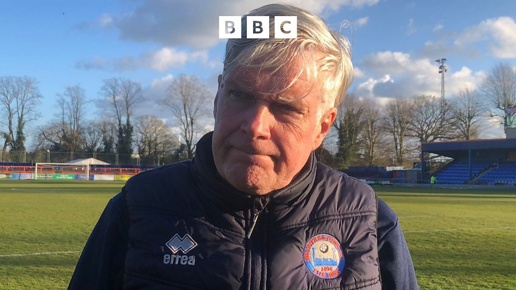 Braintree Town manager Steve Pitt speaks after a 1-1 draw with Carlisle United in the National League. (Image credit: Peter Morris/BBC)