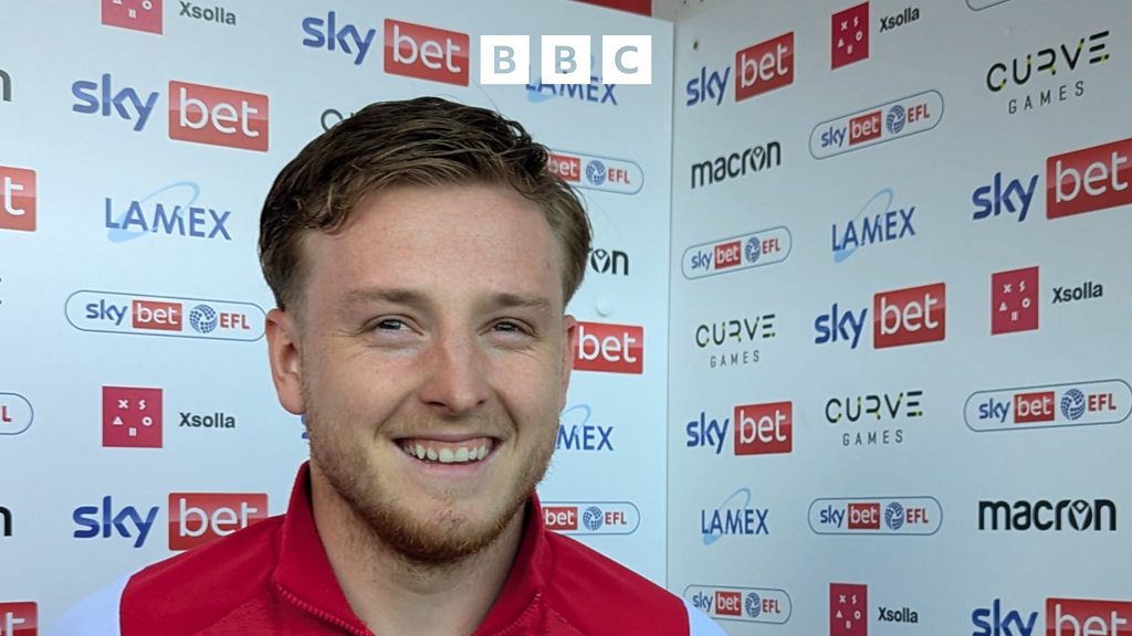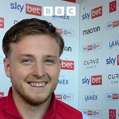 Harvey White reacts after scoring the winner for Stevenage against Blackpool. Image: BBC