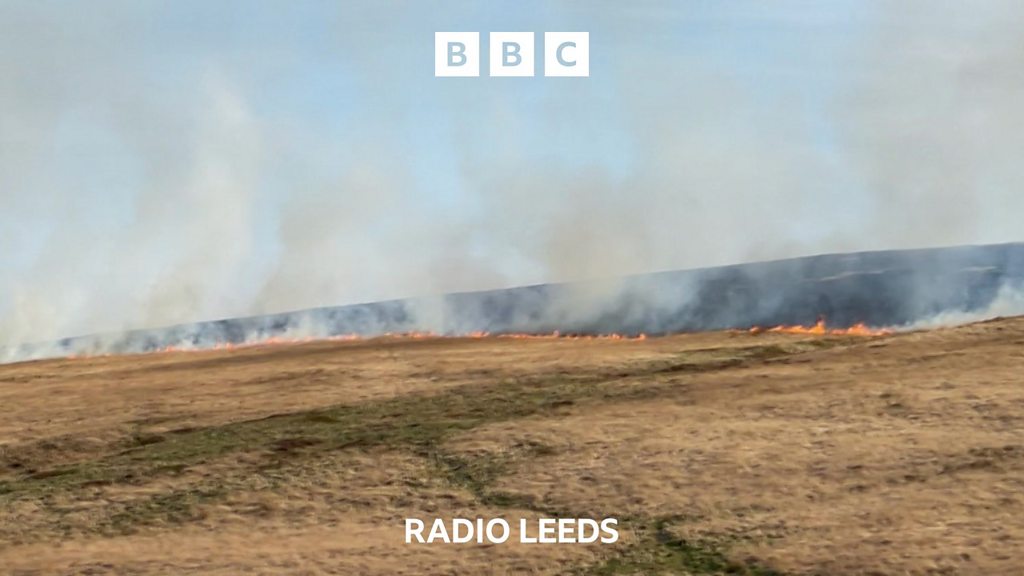 West Yorkshire Fire and Rescue Service said the moor near Huddersfield was still actively burning on Wednesday morning after two separate fires broke out at Deer Hill and in the Five Mile Post area on Tuesday. Assistant District Commander for Kirklees - Chris Bell, spoke to the BBC’s Tom Ingall at the scene of the blaze.