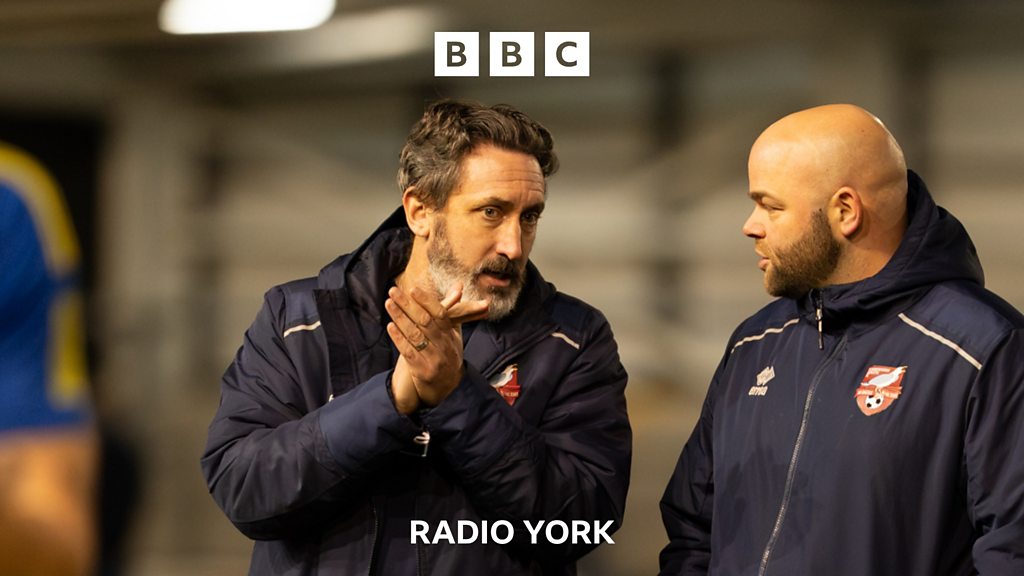 Scarborough Athletic manager Jonathan Greening speaking to Peter Spencer, ahead of their trip to Buxton.
