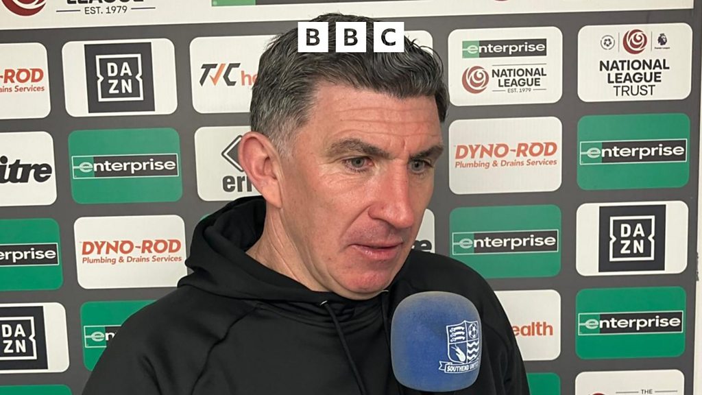 Southend United head coach Kevin Maher speaks after a 0-0 draw against Solihull Moors in the National League. (Image credit: Warren Muggleton/BBC)