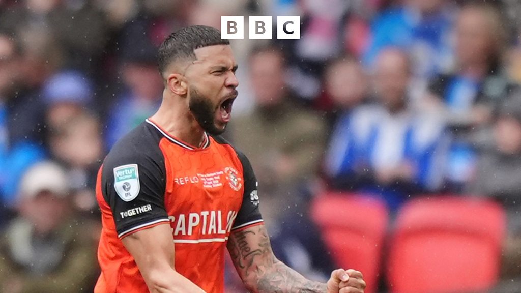 Nahki Wells after scoring twice to help Luton win the EFL Trophy 3-1 against Stockport. Image: BBC