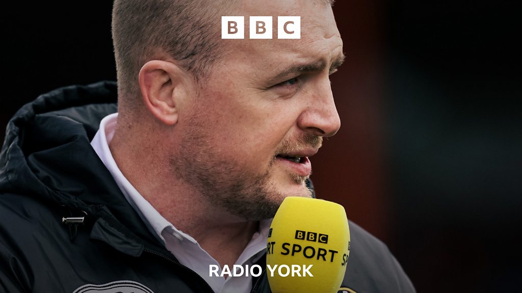 York Knights head coach Mark Applegarth speaking to Peter Spencer, ahead of their Super League match against Leigh Leopards.