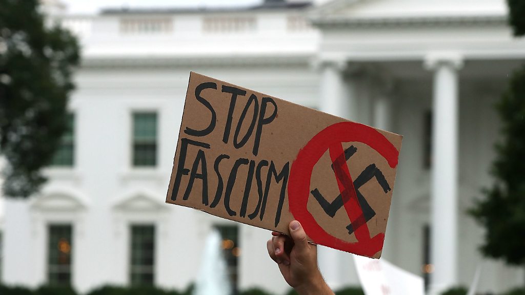 GoDaddy, Google and Cloudflare stop providing internet services to the Daily Stormer after it disparaged a woman killed during protests in Charlottesville. Plus, Mark Robinson of Kolos tells us why he thinks Norway might be the perfect place to build the "world's largest" data centre. And we visit Manchester in North-West England to find out how the city plans to use data to make its public transport more responsive to passenger demand. Presented by Rory Cellan-Jones, with BBC tech reporter Chris Baraniuk, and special guest Jeni Tennison, chief executive of the Open Data Institute. (Image: A man holds up a sign reading "Stop Fascism" during a protest against racism in front of the White House earlier this week. Credit: Mark Wilson/ Getty Images).