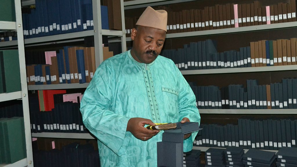 When Islamist militants took control of the Malian city of Timbuktu in 2012, Dr Abdel Kader Haidara feared for his life, and for his collection of rare and precious books. He tells us how he managed to save over 300,000 ancient manuscripts - a record of Mali's history - by putting them in metal boxes and smuggling them out of Timbuktu. Father Columba Stewart, a Benedictine monk from the Hill Museum and Manuscript library in the United States tells us how he was able to help Abdel. Mariachi and heavy metal aren't an obvious musical match... but both of these musical genres have inspired a band called Metalachi. The group plays arrangements of heavy metal songs in a Mexican mariachi style, and say they're the first to do it. Using their stage names, they've been telling Outlook how Metalachi came about. Aaron Fowler has been called one of the most important artists of his generation. His pieces are huge in scale and he mixes painting with sculpture, often showing the lives of his friends and family, sometimes in rather unexpected situations. His artworks have been exhibited in Los Angeles, and right now in London's Saatchi Gallery. There's a long tradition in Bangladesh of fishing with otters. It's been passed down from father to son for centuries, but it's in decline. This is not good news for the otter population in Bangladesh - because otter fishing plays an important role in their conservation. Outlook's Candida Beveridge has been to meet one of the fishermen who still works that way. Image: Dr Abdel Kader Haidara from the Mamma Haidara Memorial Library in Timbuktu, Mali Credit: Dr Abdel Kader Haidara