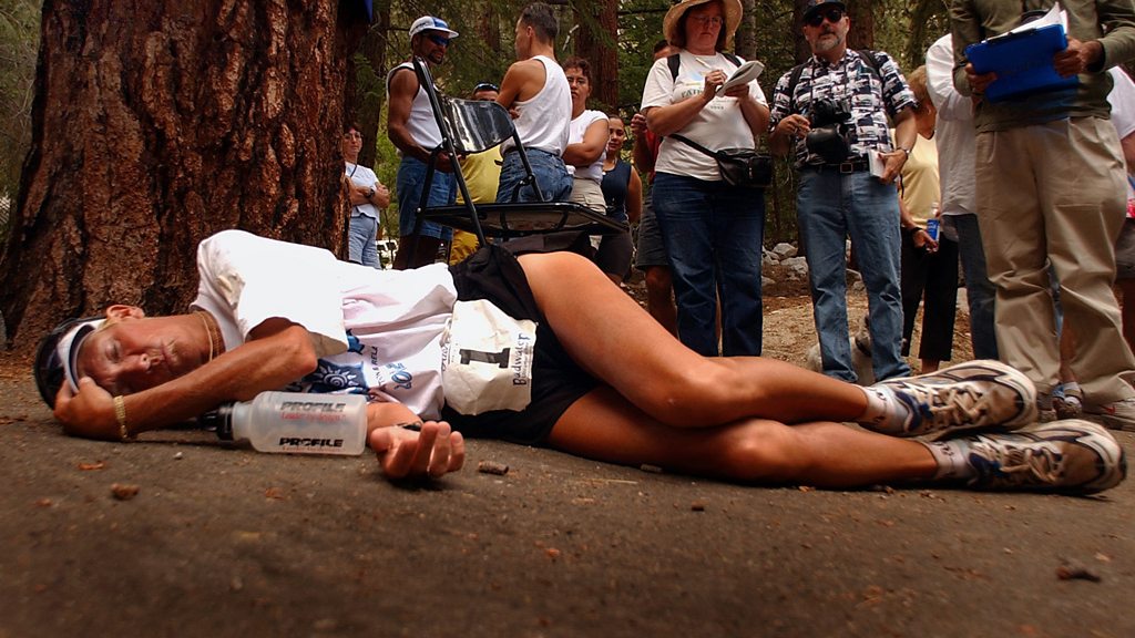 In 2002, a middle-aged mother made history by winning one of the toughest races in the world outright. Pam Reed beat all the elite men competing in the 135-mile Badwater marathon through the desert of Death Valley, California. After her victory was seen by some as a fluke, she responded by defeating all the male runners again the following year. Pam Reed talks to Lissa Cook. (Photo: Pam Reed after her victory at the Badwater marathon. Credit: Getty Images)