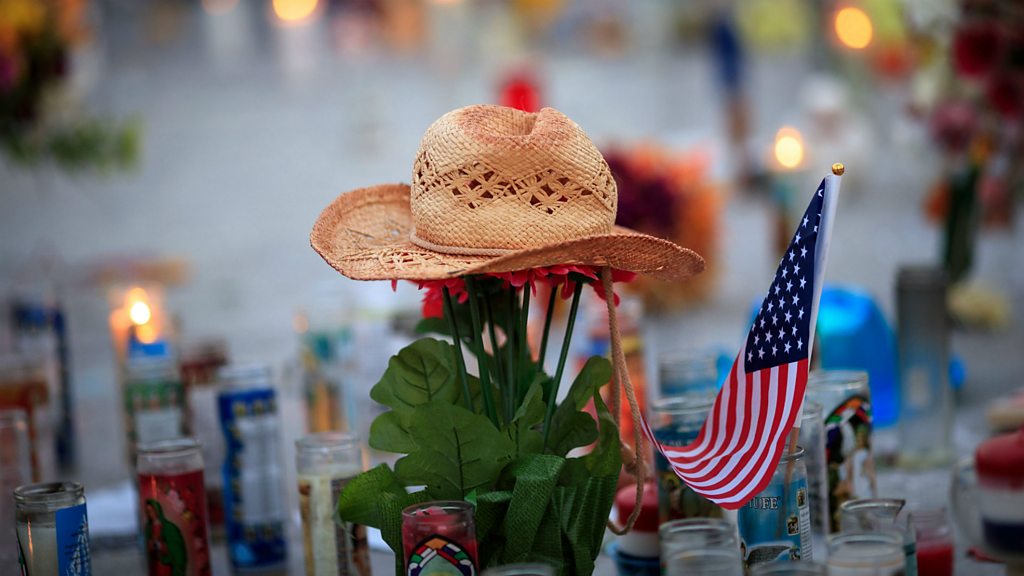 As the gun control debate continues to divide the United States we meet Will Hoge, the country music star who believes it's time for more than “thoughts and prayers” when it comes to discussing gun violence. Following the resignation of Jacob Zuma, we speak to two artists, Ayanda Mabulu and Jonathan Shapiro, who have courted controversy with their artistic depictions of South Africa’s former president. The Venezuelan rock band ViniloVersus talk about how they tackle the current political crisis in their nation through music. Plus the comedian Hasan Mihnaj shares his memories of a special moment from former host of The Daily Show, Jon Stewart, that changed his outlook on the role of comedy and satire in society. Presented by Tina Daheley. (Photo: Las Vegas memorial following the mass shooting at the Route 91 Harvest country music festival in Las Vegas in October 2017 Photo credit: Drew Angerer/Getty Images)